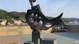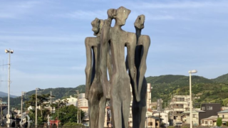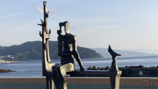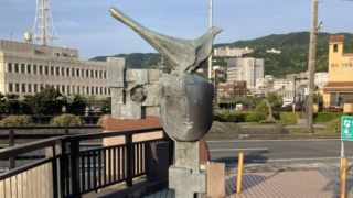 2023.5 撮影タイトル道標作者重岡建治設置場所静岡県伊東市 なぎさ公園なぎさ公園の南側の入り口からのアプローチに設置された道標。人の顔と鳥が、穏やかな平和を演出している。