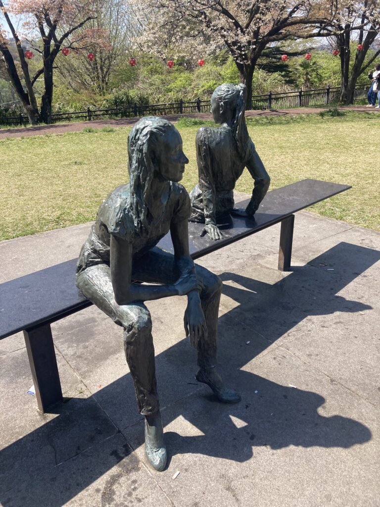 「ふたり」朝倉響子 仙台市 X Facebook はてブ LINE コピー 2025.09.182025.10.03 2023.4 撮影 リラックスしている2人の造形。杜の風によくマッチしている。 タイトルふたり作者朝倉響子 設置場所仙台市青葉区 西公園 製作年1983 パブリックアート散歩 - Google マイマップブログ用地図