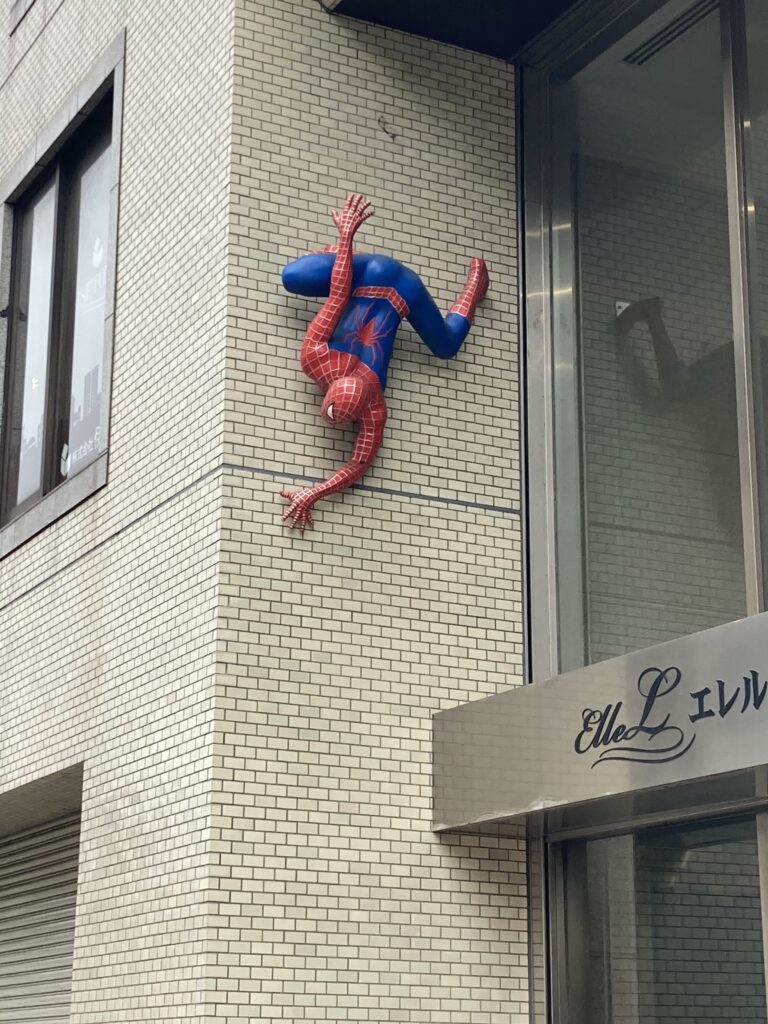 千葉の街中の一角で、スパイダーマンを見かけた。なぜここにいるかは不明。