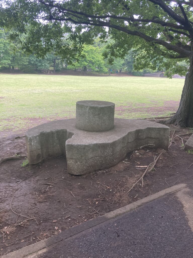 セブンアイランドは伊豆七島を巡航する高速船の名前。2002に3隻が就航し、現在も後継船が航路を結んでいる。ならば、このモニュメントは、伊豆七島のどれかではないかと目星をつけてネット検索してみた。すると、式根島の島影が一番似ている。大田区では、学校により「移動教室」という校外授業が行われることがある。推測ではあるが、このモニュメント製作の前後で、大森第七中学校では式根島への移動教室が行われたのではないだろうか。真ん中の円柱が、アート作品としてのリズムを整えている。