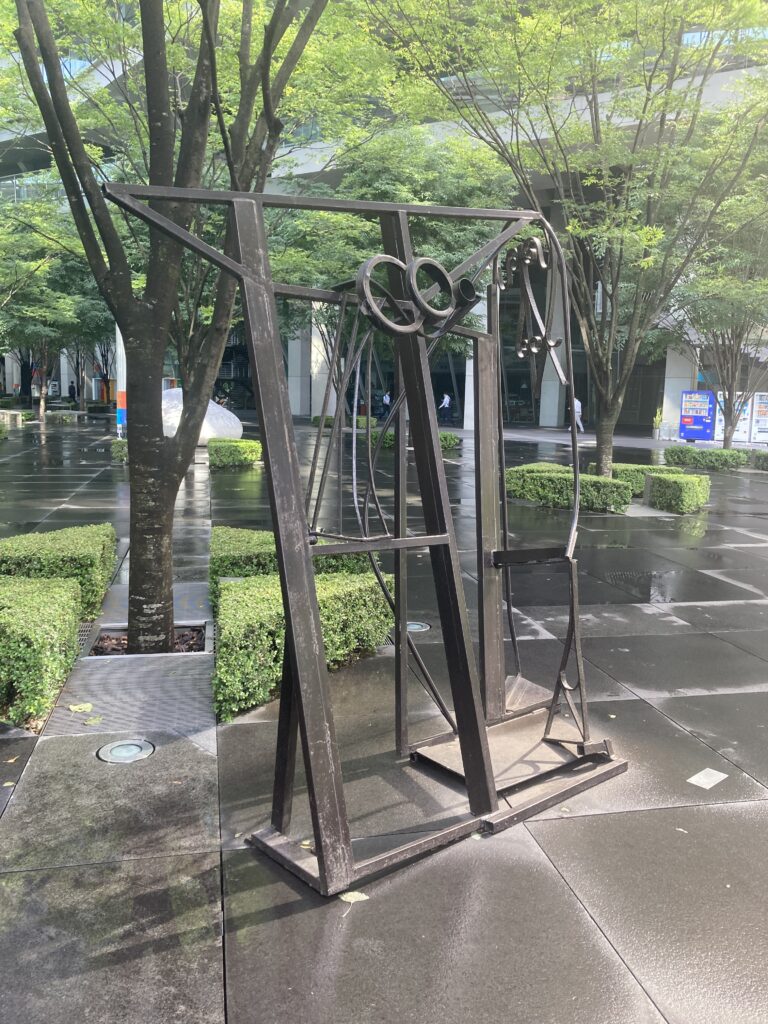 アンソニー・カロは、デフォルメした吟遊詩人を軽やかに描いている。作品の右サイドが吟遊詩人か。真ん中のギターを抱えてユーモアたっぷりに歌いこなしているようだ。スペインの愛の歌声が有楽町に響きわたる。