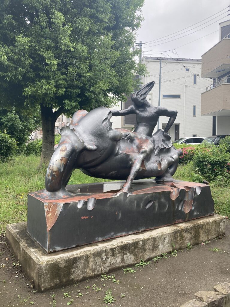 近未来のヒーロー像のような快作。機械と人間が融合するような感覚の光が走る。第4回横浜彫刻展入賞作品。