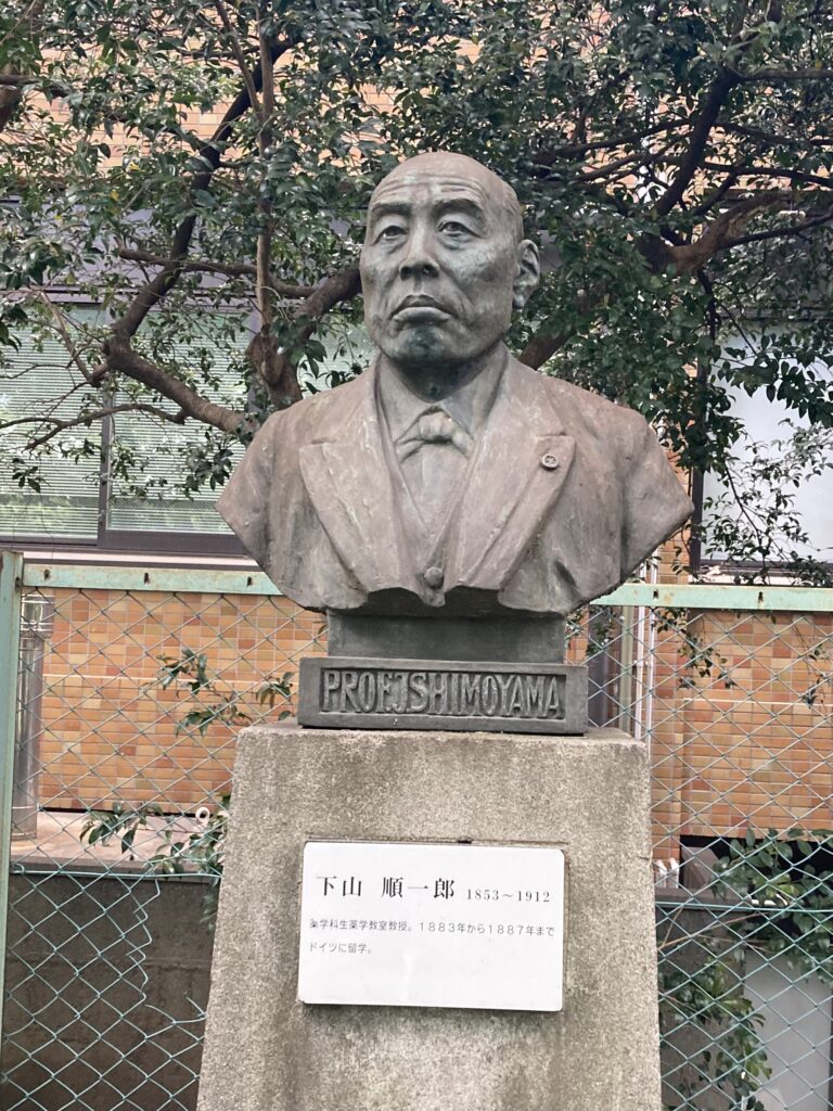 下山順一郎は日本の薬学の草分け的な存在。1853年に犬山藩藩校の助教・下山健治の長男として生まれる。1870年(明治3年)犬山藩の貢進士として大学南校に入学し、ドイツ語を学んだ後に製薬学を修める。下山は、日本初の薬学博士であり、東京帝国大学薬学部初代教授。また、第2代日本薬剤師会の会長などの要職を歴任。もともと本草学に強く、1907年に私財を投じて北区十条に薬草園「是好薬園」を開設し、学生の指導や自らの研究のために活用した。医薬分業を提唱した。
