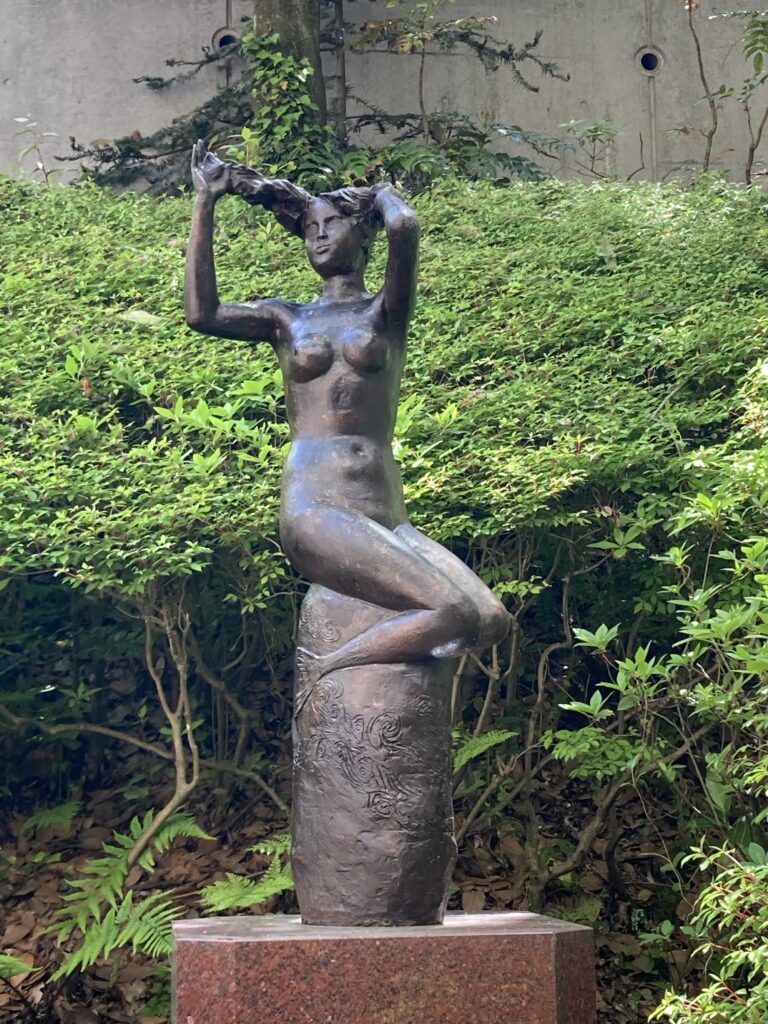 佐藤忠良のメルヘンタッチの作品。牧神像ともども、渋谷に同じものが設置されている。水しぶきを感じそうな瑞々しい作品。