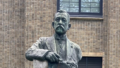 彫像を製作した水谷鉄也は、1876年に島原藩士だった家に長男として生まれる。養父の勤務の都合で奈良に移住。奈良の尋常中学校に通う傍ら、森川杜園、和田貫水に彫刻と絵画を学ぶ。杜園の死後、独学で彫刻を学ぶが、1887年、21歳で東京美術学校に入学。高村光太郎が同期で、武石弘三郎は一つ上。卒業後、東京美術学校で教職に就き、文展でも入選を重ねる。1937年には水谷の手による乃木希典像が片瀬に建立されたが、第二次大戦後のどさくさのなか行方不明になり、今も見つかっていない。