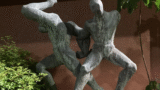 関根の彫刻に登場する特徴的な円錐をメインに据えた、シンプルな作品。重厚な存在感をただよわせている。