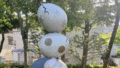 馬頭公園の四隅には、なかがわみさこの作品が設置されている。この作品は「プレゼント」。箱が遠近法的にデフォルメされており、何が飛び出すのか期待を高める。