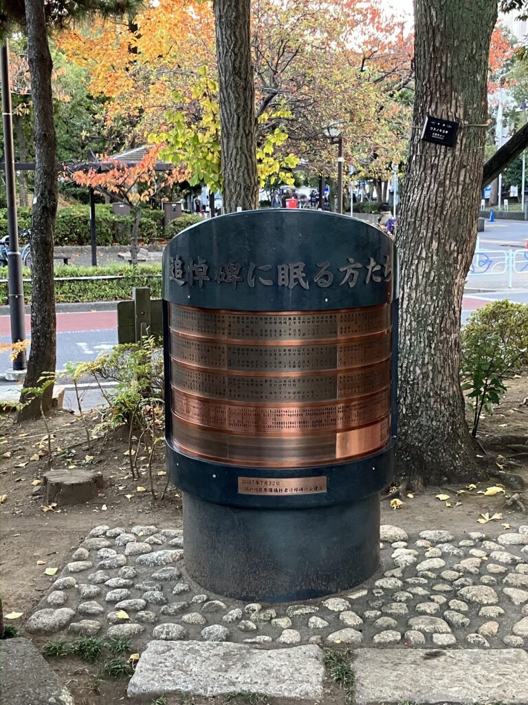 この碑の建立にあたっては「原爆の図」の作者丸太位里・俊夫妻が絵筆をとり、江戸川在住の被爆者200余名と区民がノミをふるい、多くの人の協力がありました。