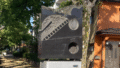 碑に長崎市寄贈と彫られている。長崎の強烈な閃光を浴びた瓦。