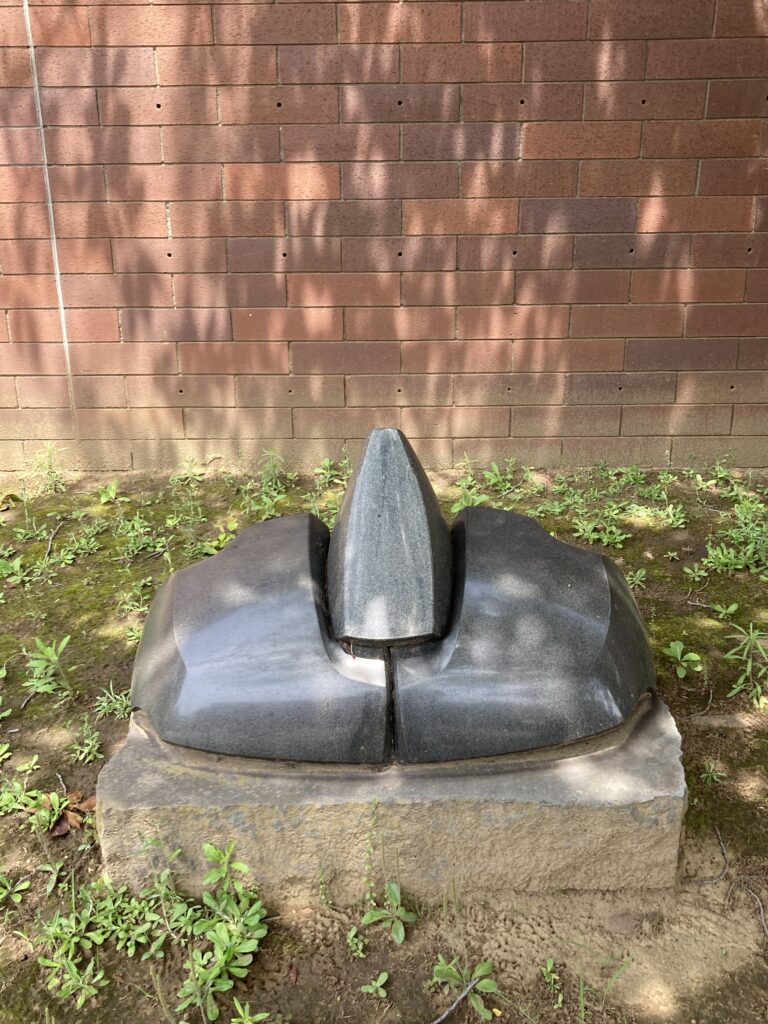 山崎英五は千葉県館山市北条出身の彫刻家。1947年生まれ。県立安房高校卒業後、東京藝術大学を卒業、同大学院修了。代々木ゼミナールの講師をしながら創作を続け、新制作協会展などで活躍。嘱望されながらも、34歳の若さで急逝する。1982年に亡くなっているので、この作品はその1年前のもの。