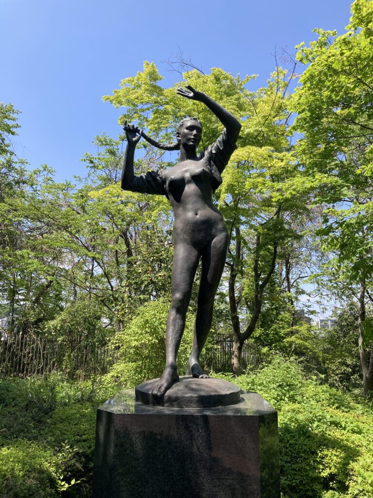 佐藤忠良らしい、動きのある人物像。この作品に近いニュアンスの佐藤忠良作品は、全国各地に設置されている。