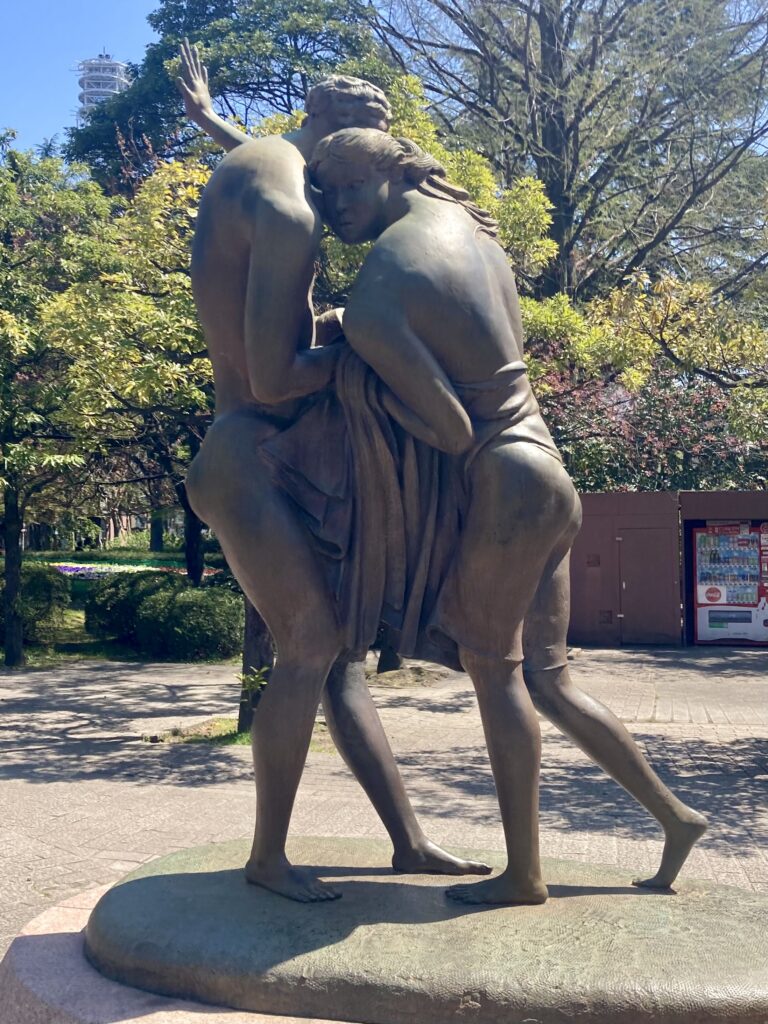 一色邦彦は、古代の西洋彫刻のような独特のフォルムが魅力。この作品は、顔立ちも西洋風だが、肩が膨らみ上半身が厚い体型も西洋人を思わせる。