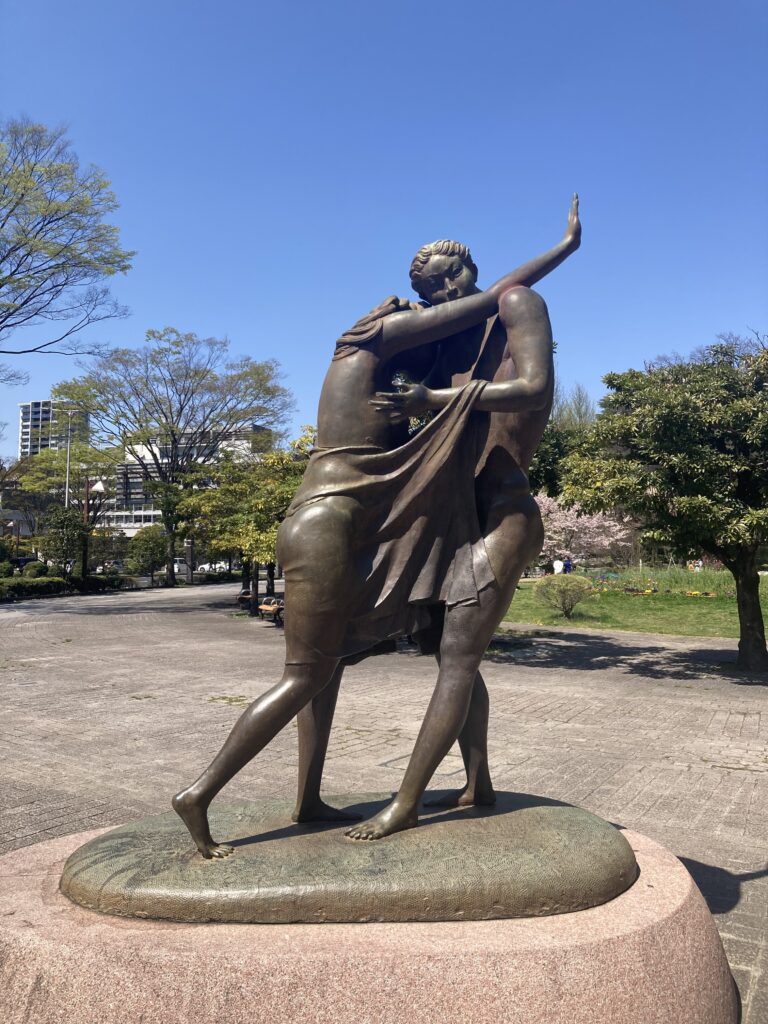 女性が男性に駆け寄って身体を預ける体勢になっているが、その顔は男性を向かず、真っ直ぐ鑑賞者に向いている。視線は鋭く、射竦められそうだ。その含意はどこにあるのだろう。ニュアンスを考えると、どんどん味わい深くなる。