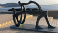 この「家族」が、なぎさ公園のメインモニュメント。公園の奥の中央に、ひときわ大きいこの重岡の作品が鎮座している。1977年に、伊東市市制30周年記念として製作された作品。なぎさ公園の重岡建治の彫刻は、この「家族」から始まった。