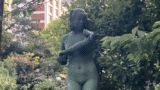 この像は西望の息子の北村治禧が子どものころの姿。西望が、日露戦争で戦死した軍神・橘周太中佐の肖像を製作していた際、当時5歳の治禧がアトリエに入ってきて、資料として置いてあった橘中佐の軍靴を履いて敬礼する様子が可愛いらしくて作品にしたという。第12回文展に出品された。