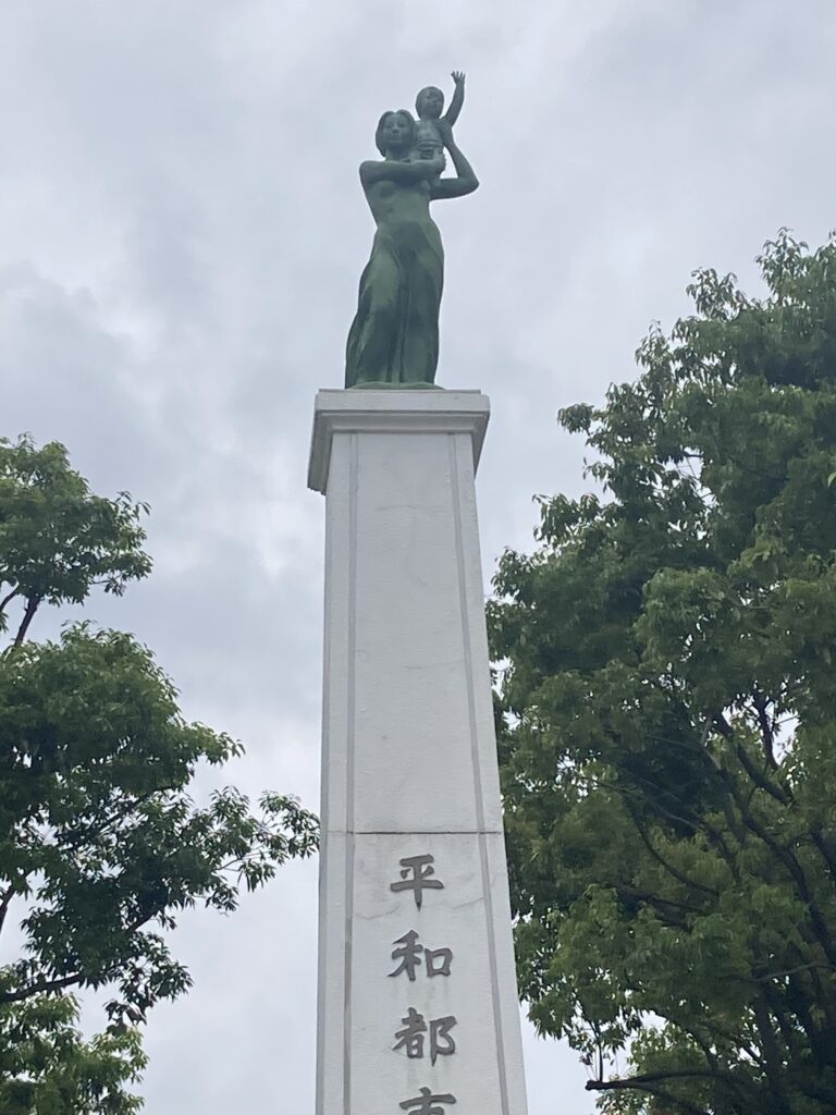 この高橋剛な母子像は、この平和宣言に合わせて製作された。見上げる空は青い。