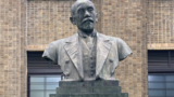 日本民藝館は、1936年に、民藝運動の主唱者で美術研究家の柳宗悦により建てられた。柳は、1889年に東京帝国大学文科大学哲学科を卒業、ロダンや木喰の美術を広く紹介したことでも知られる。民藝運動は、日常品の中に美を見いだし、職人の技の価値を評価する動き。柳は、自らの蒐集物を広く公開すべく、1931に浜松で日本民藝美術館を開館。1933年には閉館となるが、1936年にここ駒場の自宅隣に日本民藝館をオープンした。このモニュメントは、日本民藝館開館50周年を記念したもの。和の味わいが美しいモニュメント。