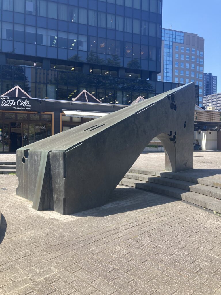 この作品は、悠久の時間を巨大なモニュメントに仮託したものだろうか。いろいろな時間を積み重ねた吾妻だからこそ見える風景なのかもしれない。吾妻の作品に特徴的に現れる虫食いのような穿ちも見ることができる。