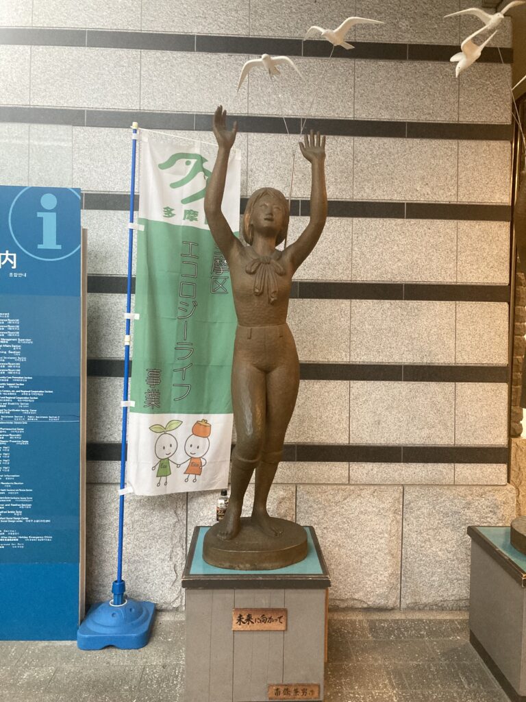 「未来に向かって」南條兼男 多摩区 X Facebook はてブ LINE コピー 2025.09.232025.10.15 2023.4 撮影 タイトル未来に向かって作者南條兼男設置場所川崎市多摩区役所 多摩区役所にある、木彫の少女像。両手の先を飛ぶのはコアジサシ。空へ向かう動きが表現されている。未来の開かれる予感を感じさせる。 パブリックアート散歩 - Google マイマップブログ用地図