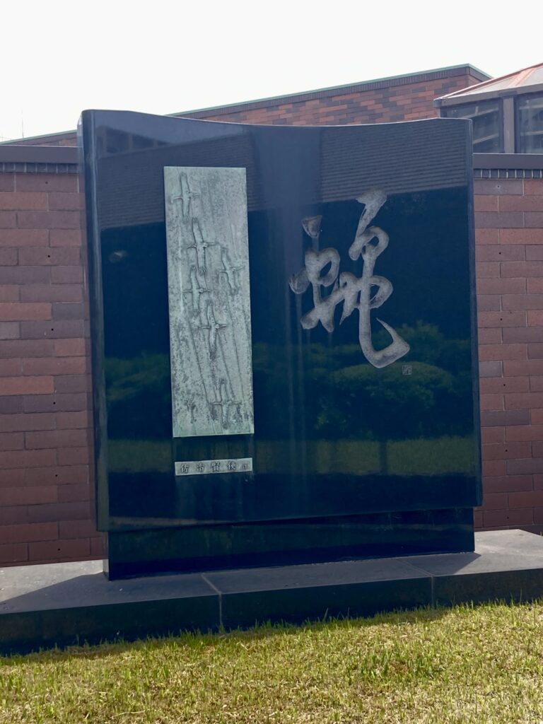 作者の名前は作品自体に表示されているが、タイトルなど詳細は千葉県立美術館のホームページでも紹介されていない。右側の漢字は、残念ながら私には読めない。左には、飛翔する鳥たちのレリーフ。鶴だろうか。日本文化の粋を感じる。