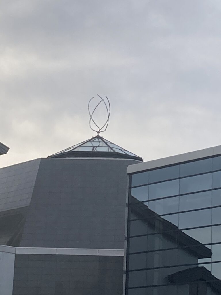 府中の森芸術劇場の屋根のトップに設置された伊藤隆道の作品。この「空に舞う」と対になるように伊藤の「宙に舞う」も屋内のホール天井を飾っていたが、保安上の観点から、現在は外されている。