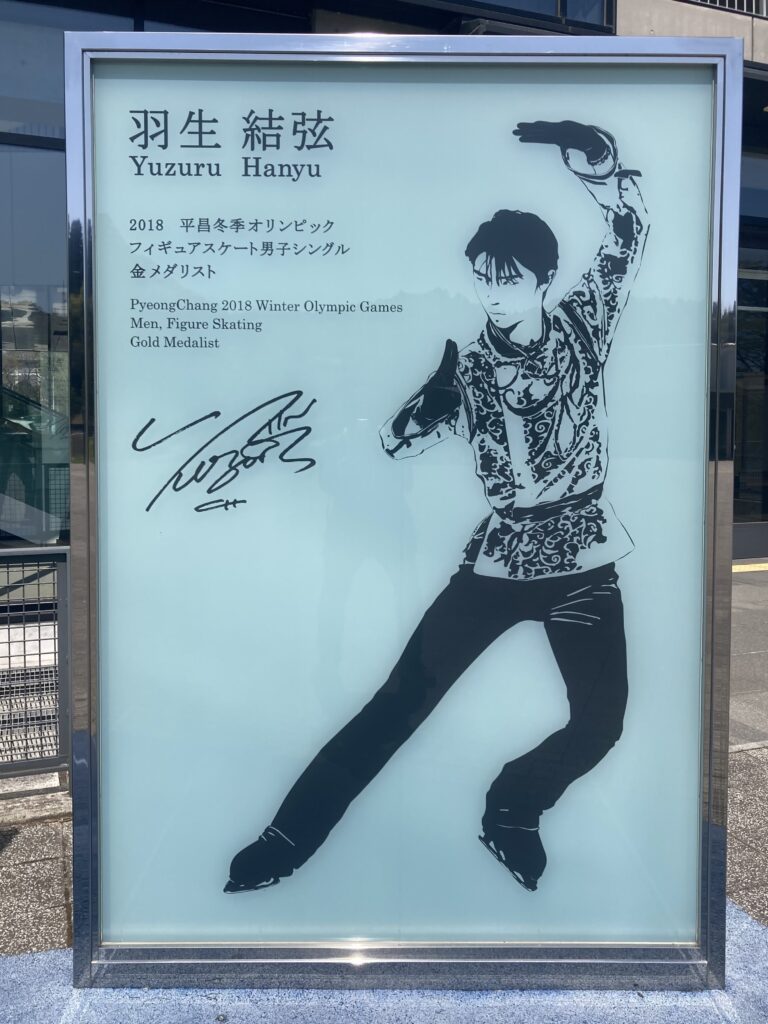 「陰陽師」を滑った鬼気迫る姿を写したこのモニュメントの更に脇に、北京の4回転アクセルの羽生結弦のモニュメントが見たかったなあ。