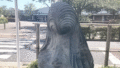 天野裕夫の不気味動物。タイトルはアフリカゾウ・キリマンジャロ山と読める。天野の魅力があふれている。ゾウの頭が作品の天辺に張り付くように載っていて、人の足もついている。神話の世界に引き込まれるような作品。