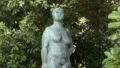 ここ反町公園にある井上信道の「陽」と「穣」は、井上作品の中でも特に印象に残る傑作だと思う。モデルは若くはなく、標準的な美しさを備えているわけではないが、リアリティがあり、そこに生身の人間を感じさせる。この「陽」は、ゆっくり座って片足を少し上げる仕草がとても魅力的だ。あどけなさすら覚える。井上の、モデルに対する深い愛着を感じさせる作品。