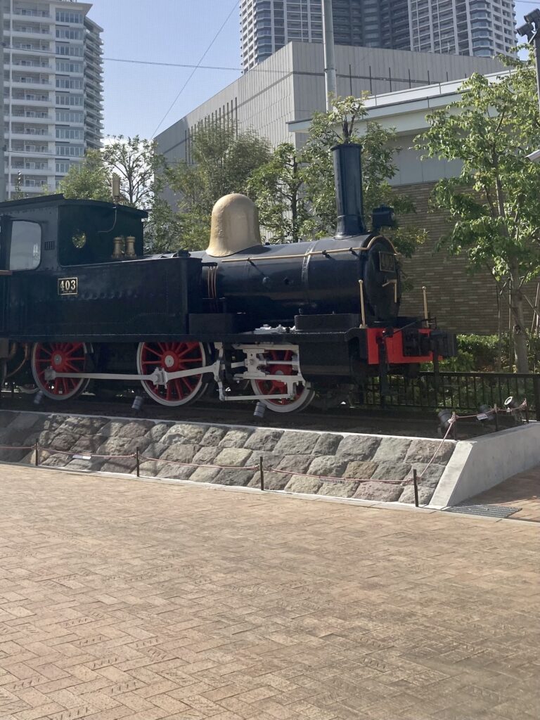 明治19(1886)年に製造された403号蒸気機関車は年代的にも高輪築堤と同じ時代に国内で走っていました。