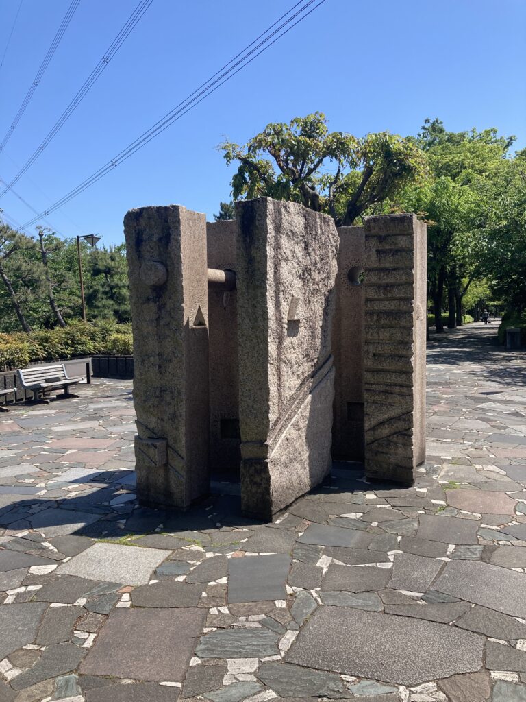 四角や三角や丸の構造が複合してシンボリックな造形となっている。