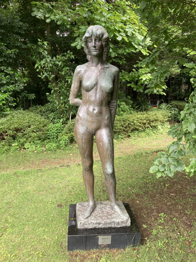 大須賀力が製作した清涼感ある裸婦像。庭園の雰囲気によくマッチした抒情を感じる。