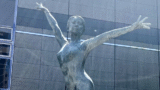 大手町駅にもマーキュリー像が設置されている。左の個体は頭が少し凹んでいる。台座の説明を転記する。