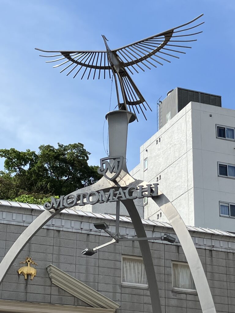 このフェニックスアーチが商店街の両端に設置されたのは1985年。モニュメントの高さは10.5mで、「翔べ光の中へ」という意味が込められている。1987からは、地元のフェリス女学院からアルバイトを募った「元町ライトフェニックス」たちが揃いの制服を着て、チャーミングセールなどの混雑時に交通整理や道案内を担っている。