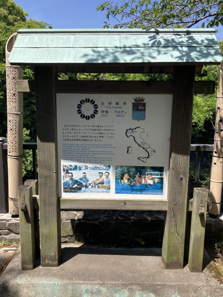 松川で行われているタライ乗り競走とイタリア・リエティ市で“太陽の祭”に行われているパリオ・デㇽラ・ティノッツァが類似していることがきっかけで、1985年7月21日に伊東 - リエティの両市は友好都市の締結を行いました。