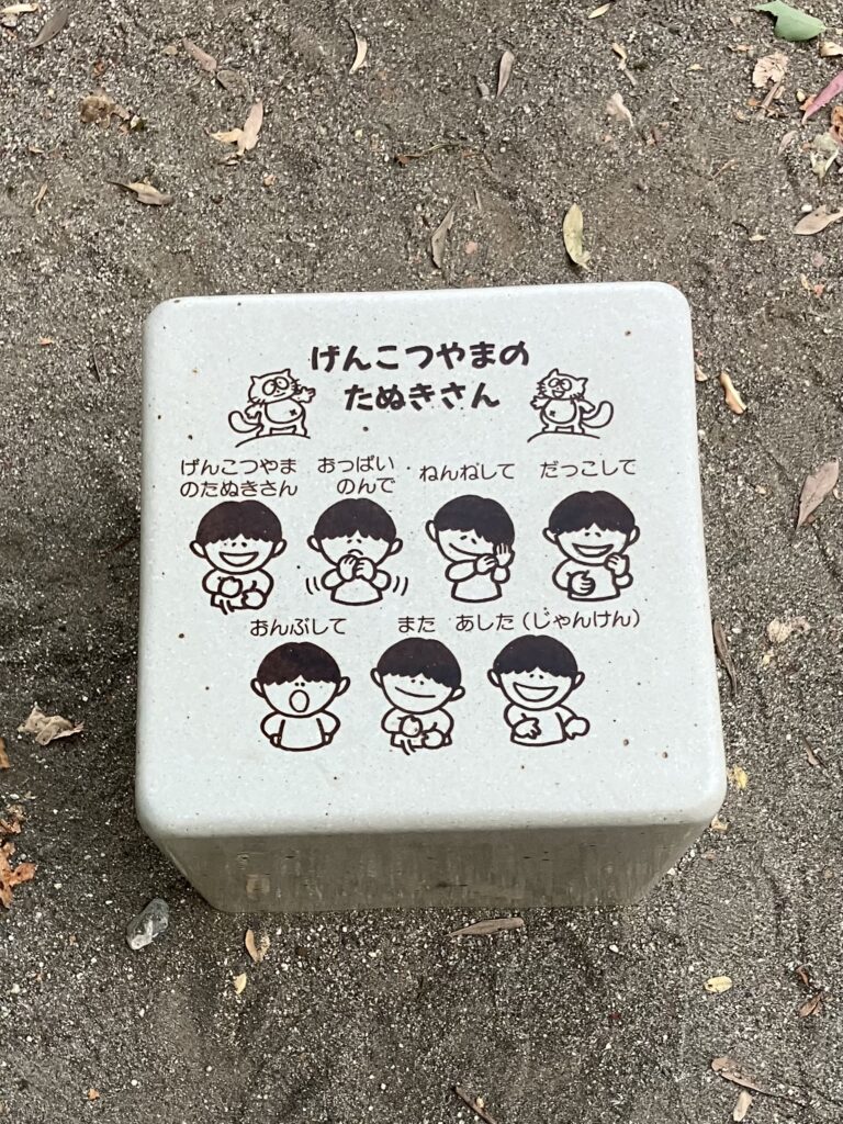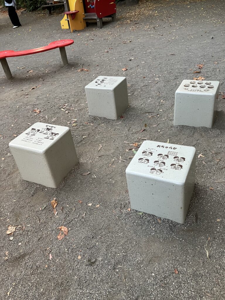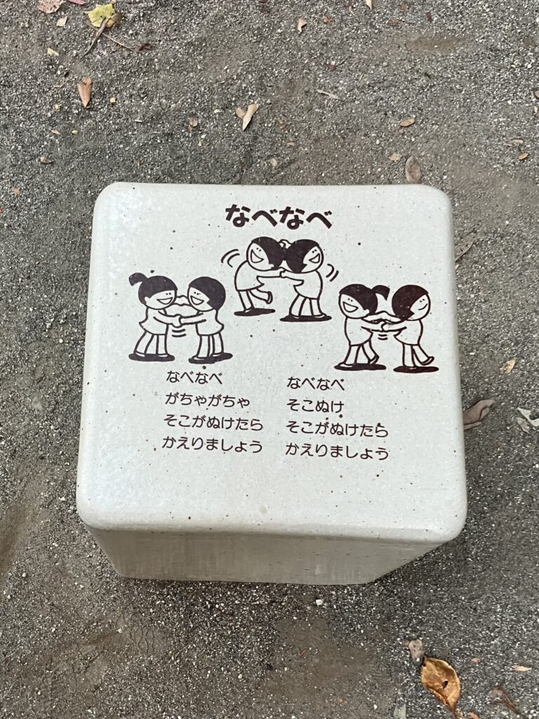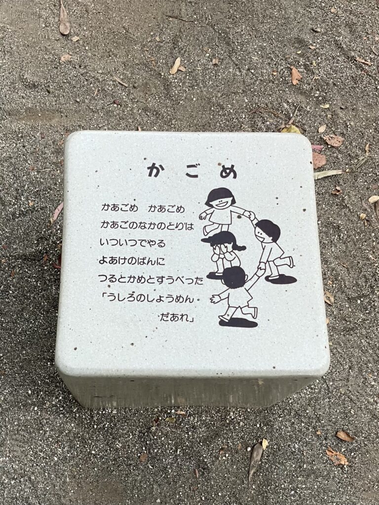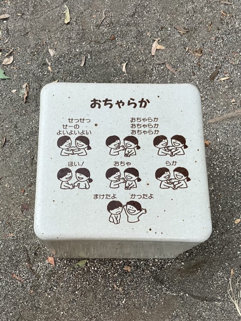 昔ながらの手遊びが彫られている。小さい子と遊ぶにも、落ち着いた良い公園だと思う。