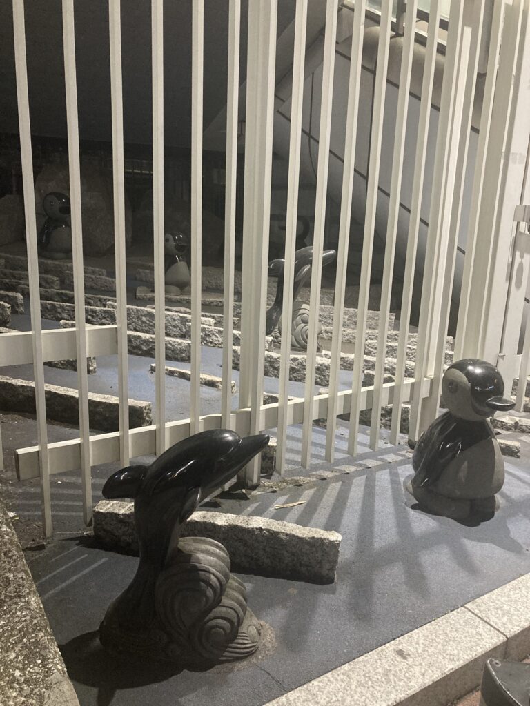 「ペンギンとイルカのモニュメント(仮)」 品川区 X Facebook はてブ LINE コピー 2025.10.292025.11.11 2023.4 撮影 2023 撮影 タイトル不明作者不明設置場所東京都品川区 JR京浜東北線大森駅 JR大森駅の階段下に設置されている海の生物。 パブリックアート散歩 - Google マイマップブログ用地図