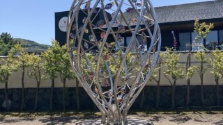 2023.5 撮影タイトルおもいやりの心作者不明設置場所静岡県伊東市 川口公園製作年2007「思いやりの心 贈(社)伊東青年会議所 2007年度まちづくり委員会」と記されている。らせんの塔に、ステンドグラス風の葉がきらびやかに配置されている...