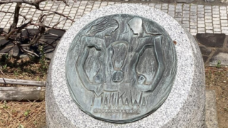 2023.5 撮影タイトル松川遊歩道モニュメント作者重岡建治設置場所静岡県伊東市 川口公園製作年2004「MATSUKAWA 松川をきれいにする市民の会」と刻字されている。松川は、正式には伊東大川。伊東付近では松川の愛称で親しまれている。重...