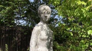 2023.4 撮影タイトル不明作者不明設置場所横浜市神奈川区 三ツ沢公園はかなげな女性像。全体的な雰囲気と、場所が横浜ということを考えると、個人的には井上信道の可能性が高いのではないかと思う。