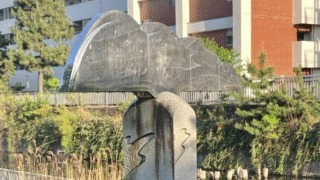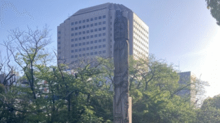 2023.4 撮影タイトル愛鳥譜 作者横山文夫 設置場所東京都江東区 仙台堀川公園 製作年1984動きのある豊かな作品。鳥を肩に乗せている。横山文夫の人物像は独特のポーズを見せることが多いが、この作品も一風変わった動きを感じる。