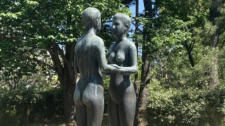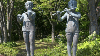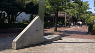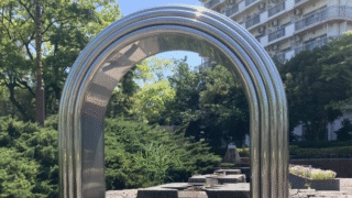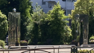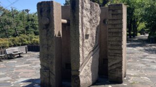 2023.4 撮影タイトル対作者世木田茂樹設置場所東京町江戸川区 臨海町緑道 製作年19982つの塔が向かい合って反響しあっている。世木田茂樹は、下記のサイトによると、伊藤隆道が設立したMOV工房に所属していたようだ。