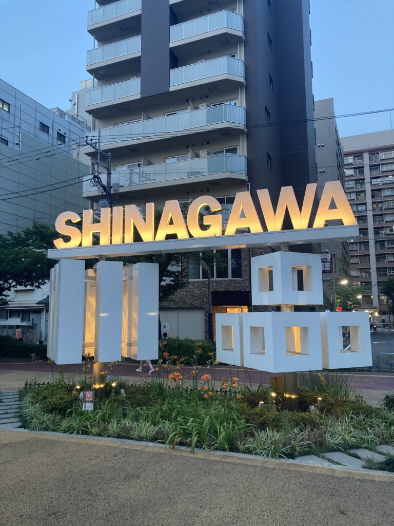 この作品は、2019年に品川区のPRのために製作されたもの。どの方向からでも品川と読める不思議なモニュメント。2020東京オリンピックに合わせて作られた。JR京浜東北線などからも見ることができる。夜のライトアップも美しい。