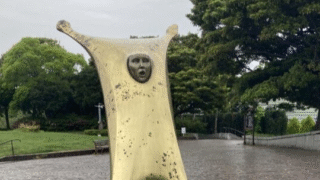 中央区 「〈眩驚〉- Ⅲ」土田隆生 2823.4 撮影タイトル〈眩驚〉- Ⅲ作者土田隆生設置場所千葉市中央区 青葉の森公園傑作揃いの青葉の森公園の彫刻の中でも、とびきり奇妙な作品。これはもう、見て驚くしかない。土田隆生は1943年滋賀県生まれ。滋賀大学 2025.10.01 中央区千葉市千葉県青葉の森公園