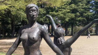 仙台市 「杜に聴く」雨宮敬子 2023.4 撮影2023.4 撮影タイトル杜に聴く作者雨宮敬子設置場所仙台市青葉区 西公園製作年1987伸びやかな2人の裸婦像。雨宮敬子の持ち味が遺憾なく発揮されている。 2025.09.18 仙台市宮城県西公園青葉区